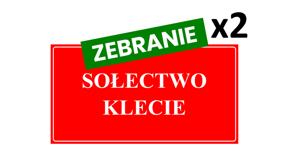 Zawiadamia się mieszkańców sołectwa Klecie, że dziś (27 stycznia 2026 r.) o godz. 17:30 na wniosek Sołtysa w świetlicy w Kleciu odbędzie się zebranie wiejskie (w przypadku braku quorum zebranie odbędzie się o godz. 17:45).